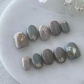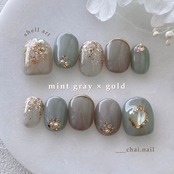 ミントグレーとダークグレージュのシェルネイル