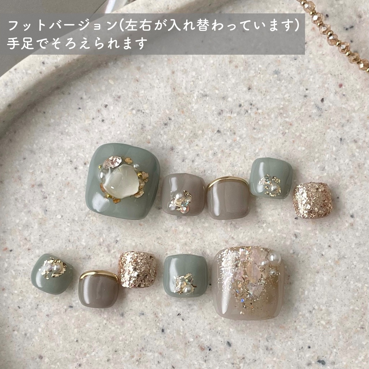 くすみカラーとシェルアートが